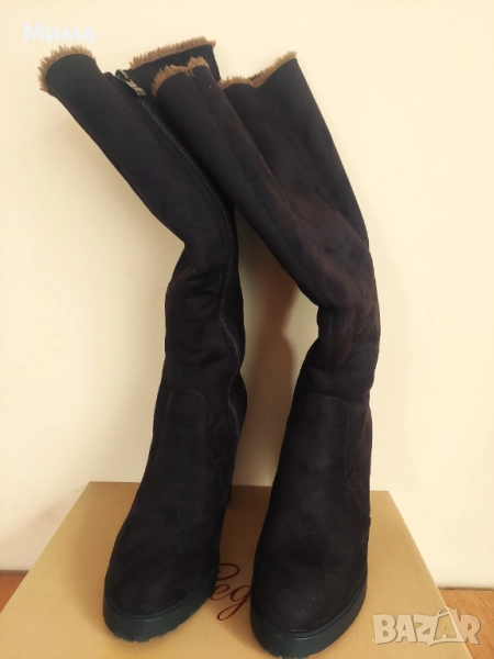 Нови дамски топли ботуши с ток и платформа „Мегияс” № 36, стелка 23,5 см., 50 лв.