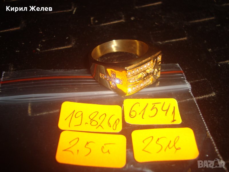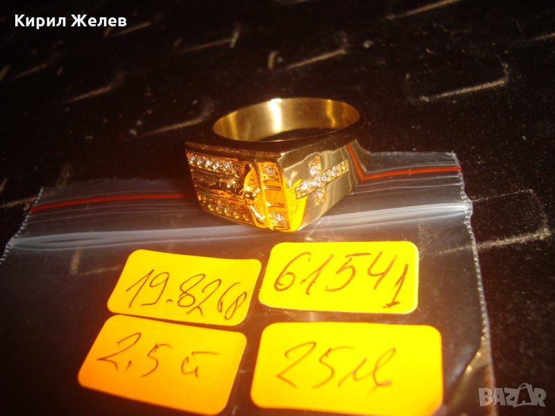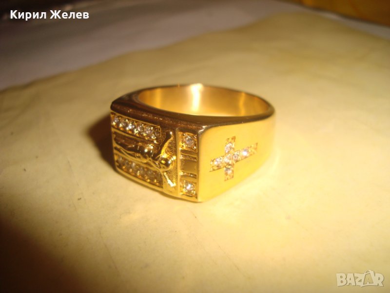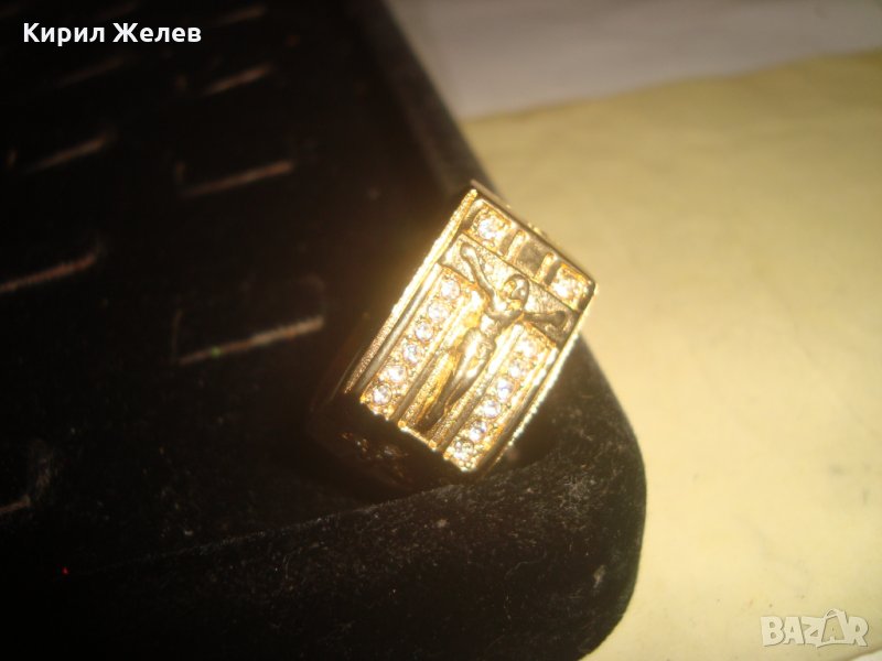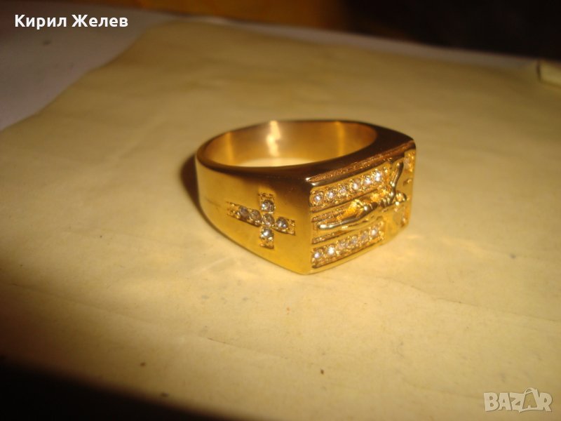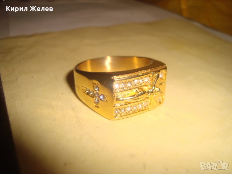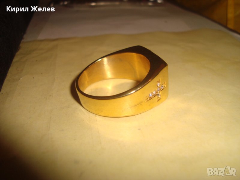 ПОЗЛАТЕН СКЪПОЦЕНЕН СТОМАНЕН ПРЪСТЕН с РАЗПЯТИЕ НОВ КРАСИВ 61541