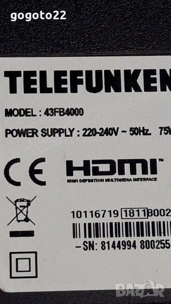 Telefunken 43FB4000 на части , снимка 1 - Телевизори - 34368107 Telefunken 43FB4000 на части , снимка 2 - Телевизори - 34368107 Telefunken 43FB4000 на части , снимка 3 - Телевизори - 34368107 Telefunken 43FB4000 на части , снимка 4 - Телевизори - 34368107 Telefunken 43FB4000 на части , снимка 5 - Телевизори - 34368107 Telefunken 43FB4000 на части , снимка 6 - Телевизори - 34368107 Telefunken 43FB4000 на части , снимка 7 - Телевизори - 34368107 Telefunken 43FB4000 на части , снимка 8 - Телевизори - 34368107 Telefunken 43FB4000 на части , снимка 9 - Телевизори - 34368107 Telefunken 43FB4000 на части , снимка 10 - Телевизори - 34368107 Telefunken 43FB4000 на части , снимка 11 - Телевизори - 34368107 Telefunken 43FB4000 на части , снимка 12 - Телевизори - 34368107 Telefunken 43FB4000 на части , снимка 13 - Телевизори - 34368107 Telefunken 43FB4000 на части , снимка 14 - Телевизори - 34368107 Telefunken 43FB4000 на части , снимка 15 - Телевизори - 34368107 Telefunken 43FB4000 на части , снимка 16 - Телевизори - 34368107 Telefunken 43FB4000 на части , снимка 17 - Телевизори - 34368107 1/17