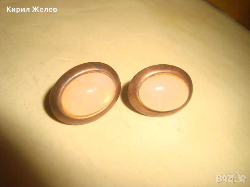 РЕТРО БРОНЗОВИ ОБЕЦИ С ЕСТЕСТВЕН БЯЛ ОПАЛ ВИНТИДЖ СТАРИННИ МАЙСТОРСКИ ОБЕЦИ 20504