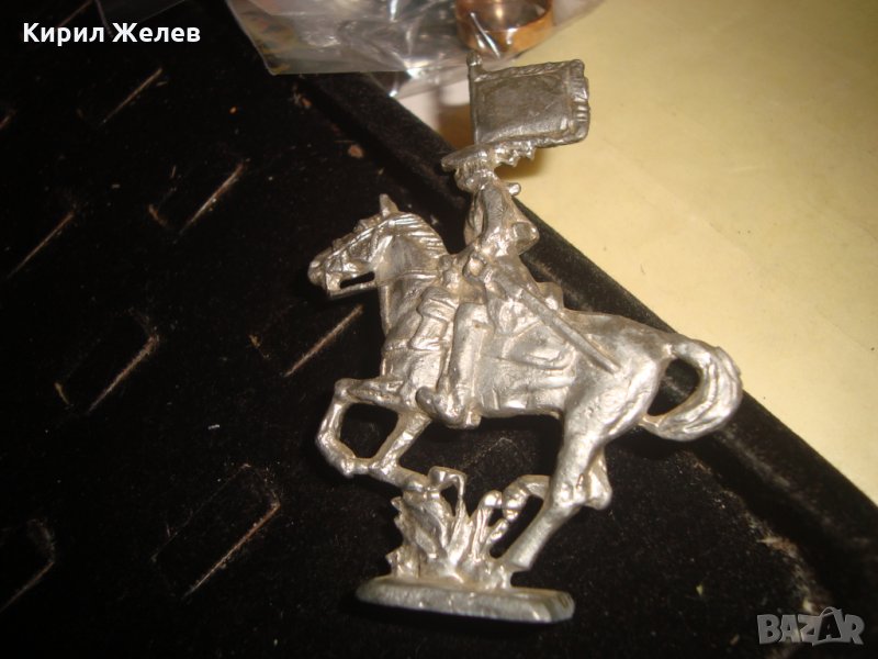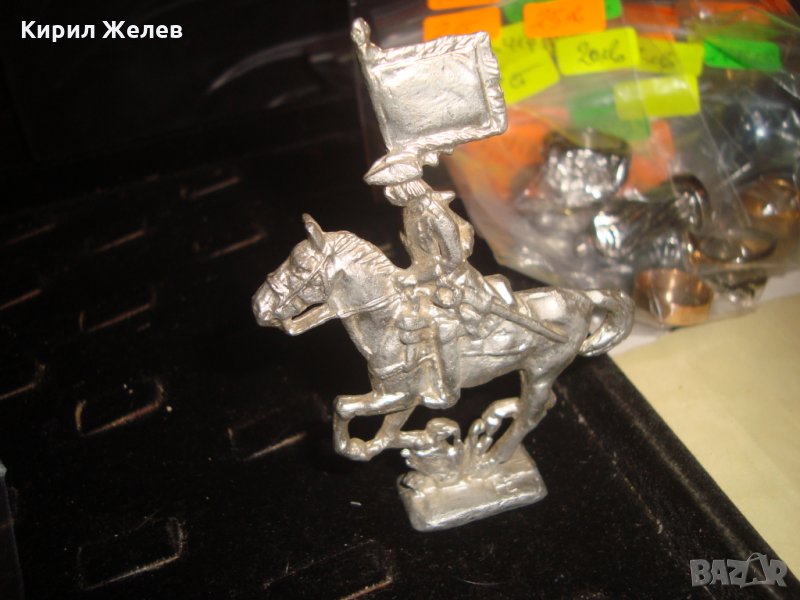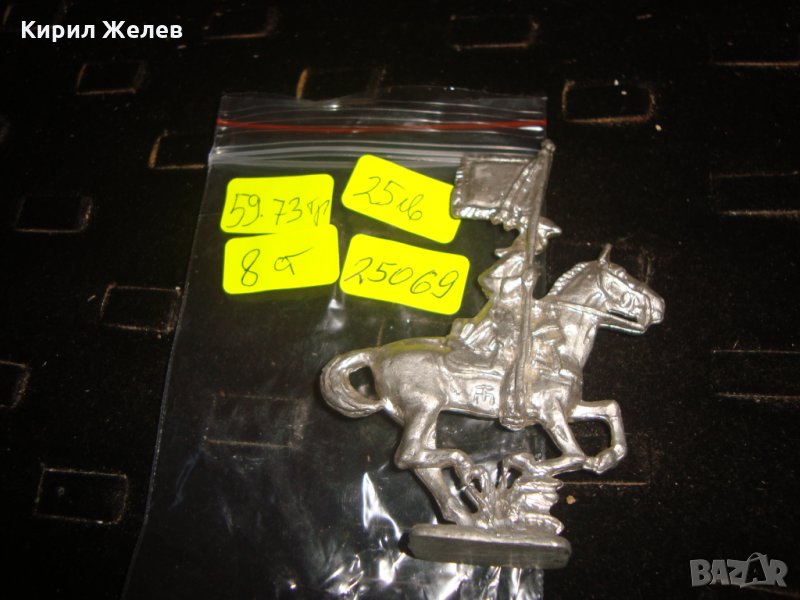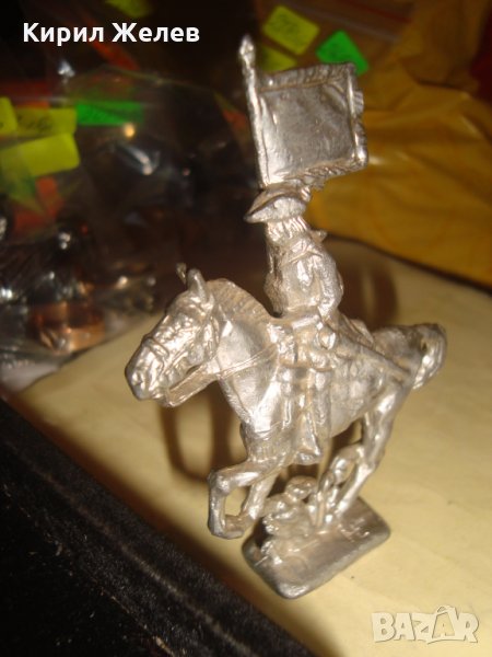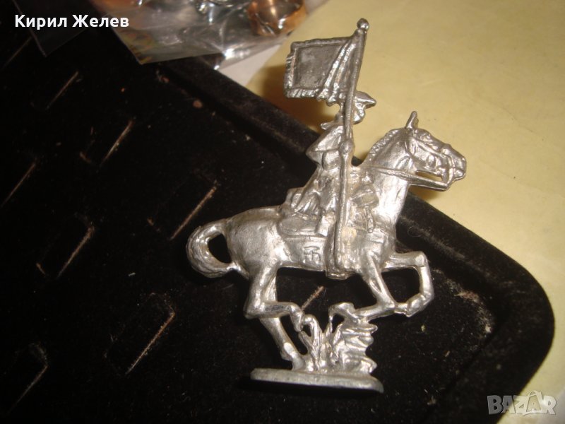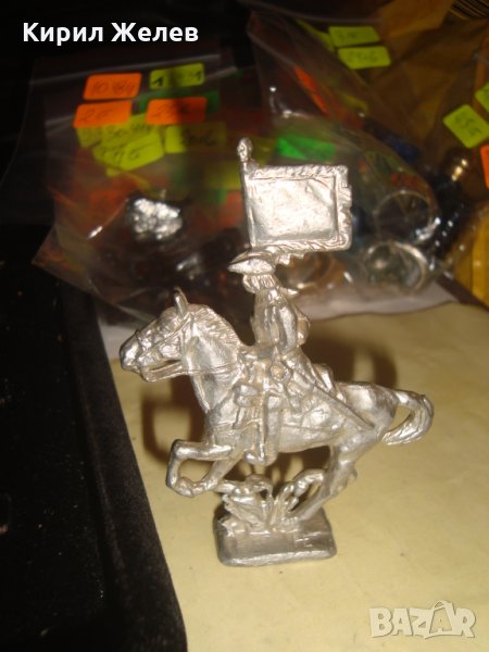 СТАР ОЛОВЕН ВОЙНИК РИЦАР КОННИК СТАТУЕТКА КАВАЛЕРИСТ ЗНАМЕНОСЕЦ 25069