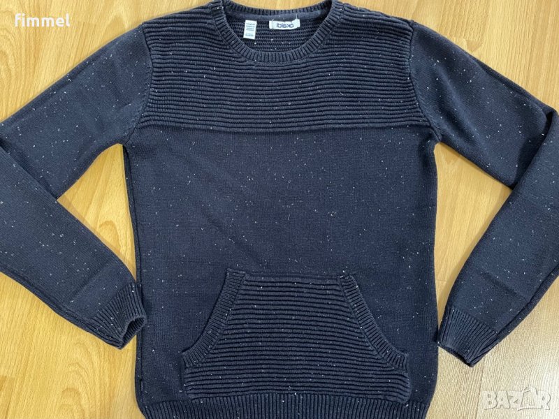 и Пуловер Okaidi в тъмносин меланж, разнородна плетка. С джоб тип "кенгуру". По етикет 12 год, 152 см