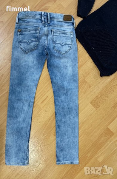 - дънки oригинални Pepe Jeans, супер гъзарски. По етикет за 12 год/ 152 см. Страхотнен деним, с избелял ефект. 5 джоба, ластик и копчета за корекция в кръста. Имат еластичност. Бродирано лого на марката.