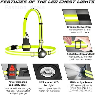 Гръдна светлина USB акумулаторна водоустойчива светлина за бегачи, тичане