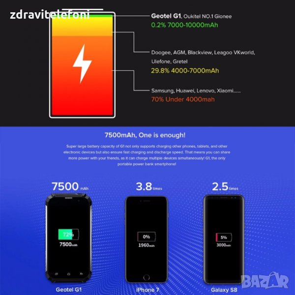 Geotel G1 7500mAh CAT удароустойчив водоустойчив телефон ip68
