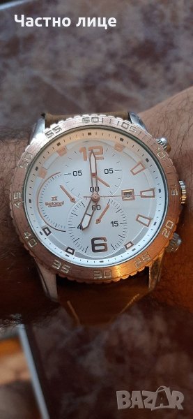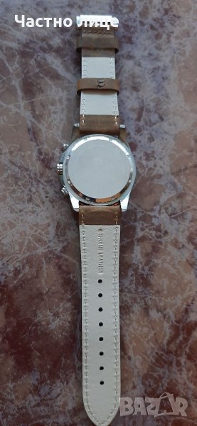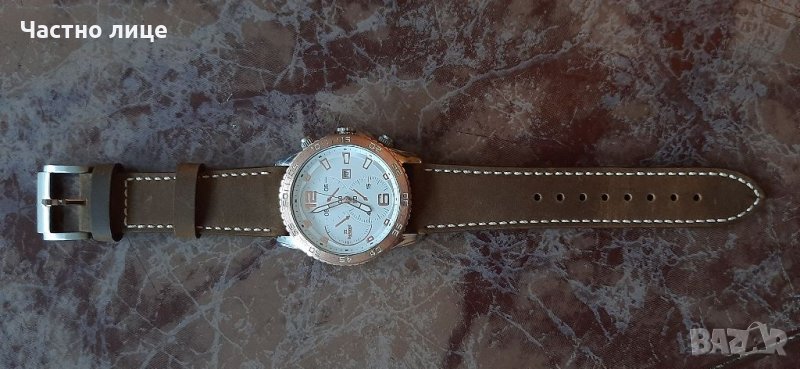 Часовника е носен малко време с незначителни следи от употреба,кайшката е от естествена кожа и е в отлично състояние! Работи много точно,стрелките в кръгчета не са подвижни!