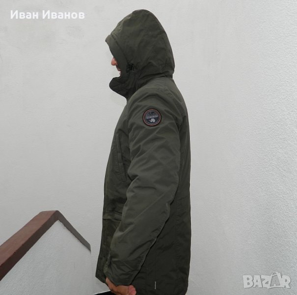 Тази парка е маслено зелена на цвят, водоустойчива и с много джобове. Якето е подплатено с изолационен пълнеж от термо/влакна и следователно ви затопля. Добре познатото лого на марката е прикрепено към ръкава. Практично и модерно, това яке е идеално за тази зима.
