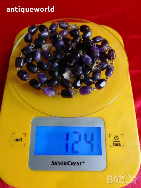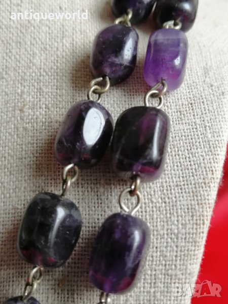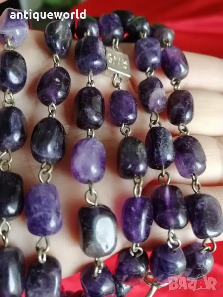Уникално Много Красиво Дамско Колие от Полускъпоценен Естествен полиран камък АМЕТИСТ ,Гердан. Дължина :120см ,Тегло 124 Грама.Състоянието е видно.