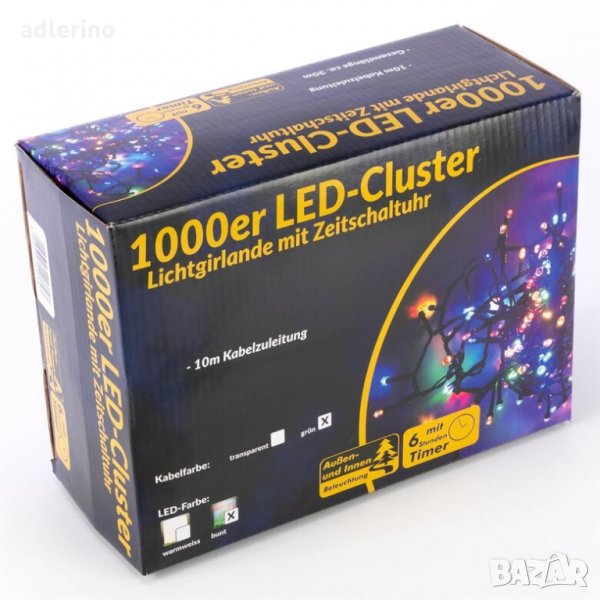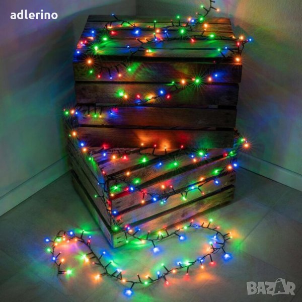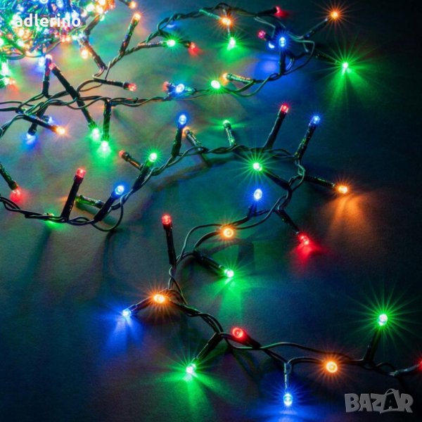 LED верига с 1000 лед светлини свети в красива многоцветна светлина.