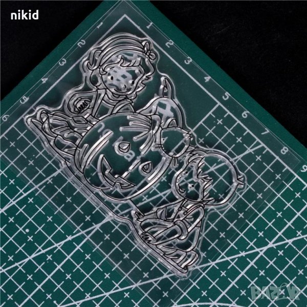Деца с Тиква и коте Хелоуин Halloween силиконов гумен печат украса бисквитки фондан Scrapbooking → Обява 34390113