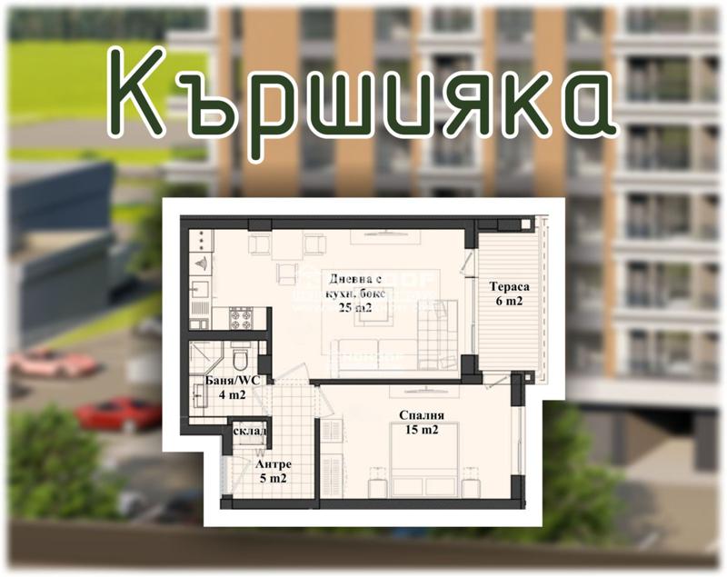 Оферта 56520: Новоизградена луксозна сграда намираща се на чудесно място в близост до Пловдивски панаир съчетаваща в себе си модерната архитектура с високо качество на строителство и усещането за уют и спокойствие. Намира се в най-атрактивния и предпочитан за живеене и инвестиция квартал на Пловдив Кършияка. Жилището, което ви предлагаме е функционален двустаен апартамент състоящ се от дневна с трапезария и кухненски бокс, просторна спалня, баня с тоалетна, склад, входно антре и една тераса. Степен на завършеност: стени и тавани- шпакловка, под- циментова замазка, балкони- гранитогрес, мокри помещения-замазка и мазилка, парапети по балкони- стъклени, дограма- PVC с многокамерен профил, врати- външна-блиндирана, хидравличен асансьор, луксозни общи части. Към момента разполагаме с различни свободни по големина жилища с функционални разпределения и избор на етаж. Множество разнообразни услуги в близост -детски градини, училище, супермаркети и удобен транспорт до всяка точка на града. Свободни партерни гаражи, подземни и надземни паркоместа. Възможност за разсрочено плащане в рамките на строителството или закупуване чрез Банков Кредит !!!