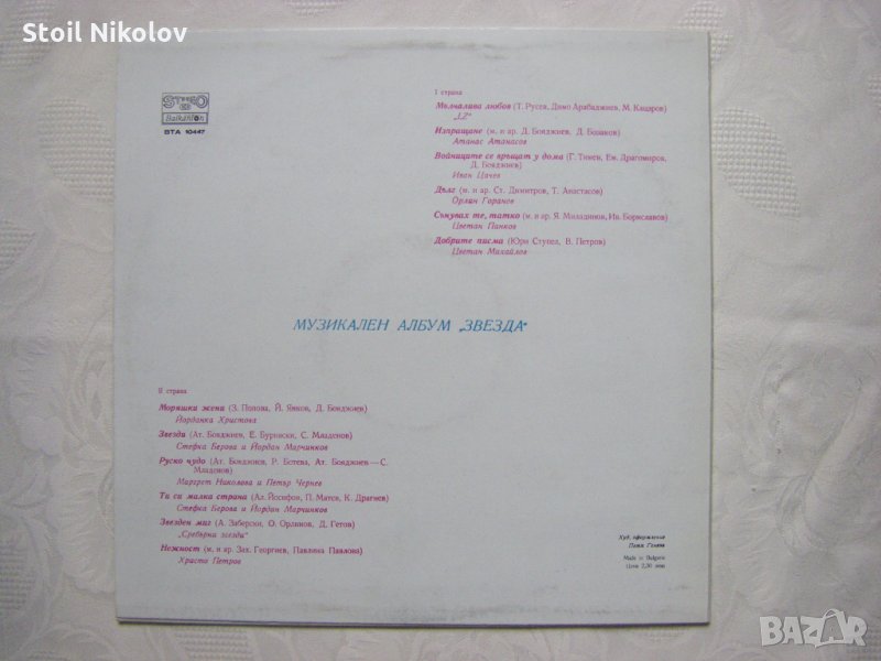 Грамофонна плоча - ВТА 10447 - Музикален албум Звезда