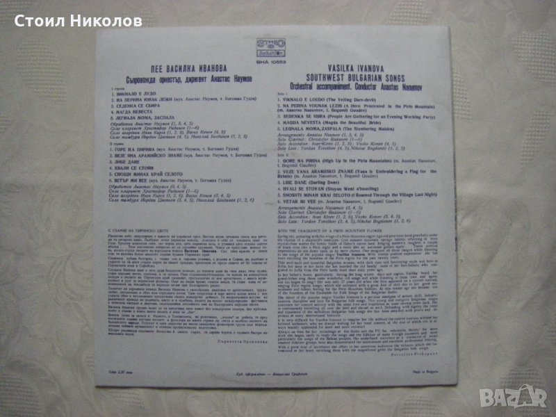 Грамофонна плоча - ВНА 10653 - Василка Иванова. Песни от Югозападна България