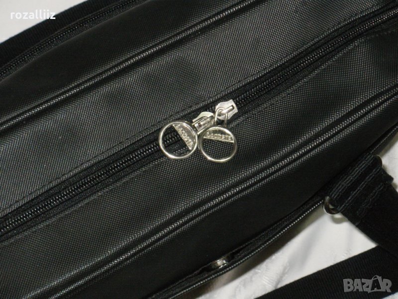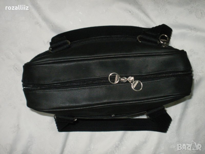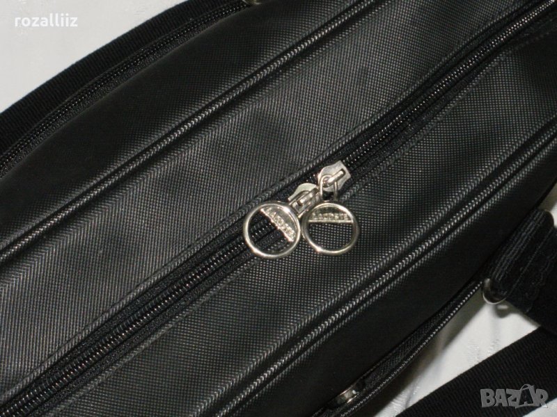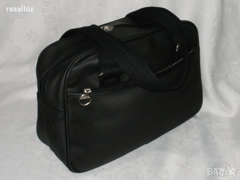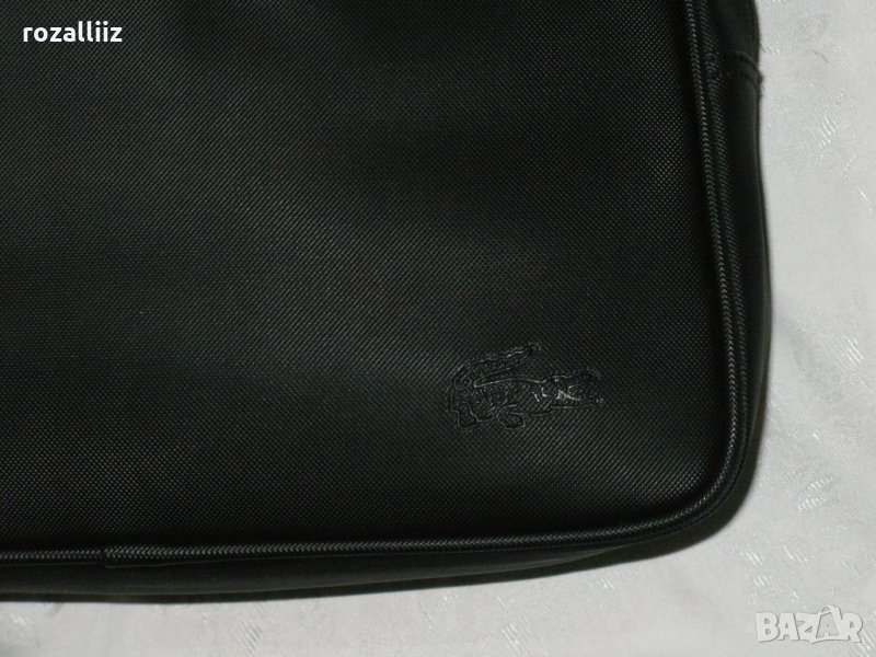 Чантата е на LACOSTE, оригинална, ползвана е много малко. Без забележки, като нова. Средна големина е но събира доста. Може да се носи на лакет и на рамо. Черна е на цвят. Отпред има джоб с цип. Отзад има джоб с магнитче. Вътре е едно отделение с два джоба от страни с ципове. Има лого от двете страни и на циповете.