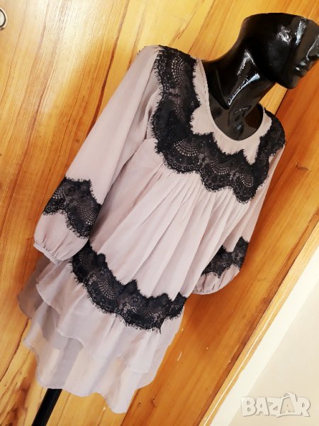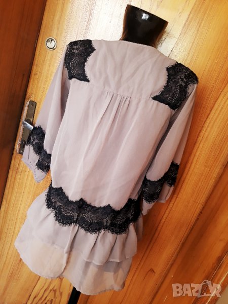 Кафяво-бежова туника шифон с декорация черна дантела М/Л → Обява 34398447