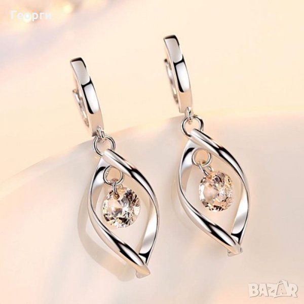 Сребърни обеци и колие от истинско сребро 925, с прозрачни камъчета! → Обява 34399215