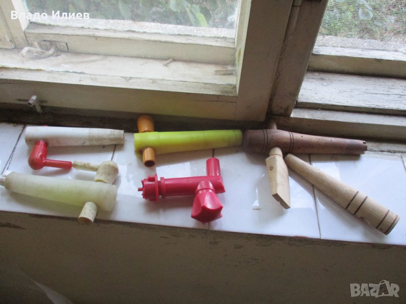 Някои от крановете са съвсем нови,други са употребявани,но запазени.Пластмасови и дървени.