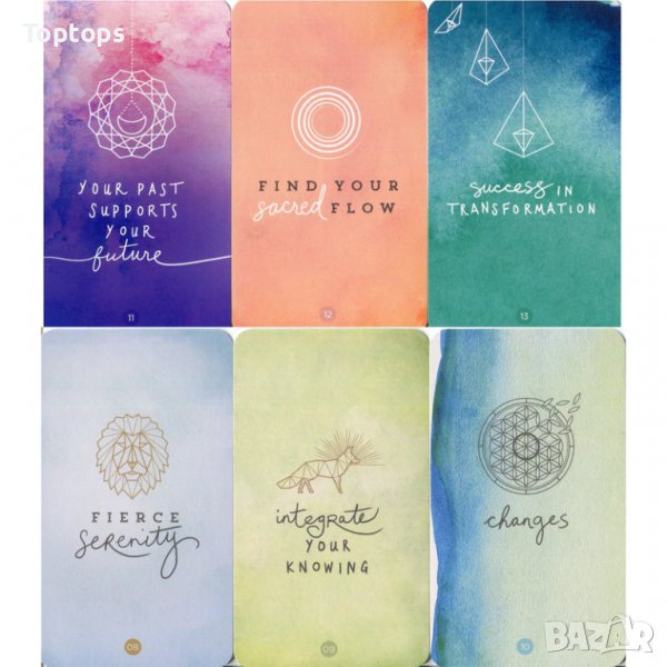 - 67 оракул карти - Sacred Creators Oracle заедно с пдф файл с инструкции на английски. Размерът им е 10,3см х 6,5см, колодата е създадена от Chris-Anne.
