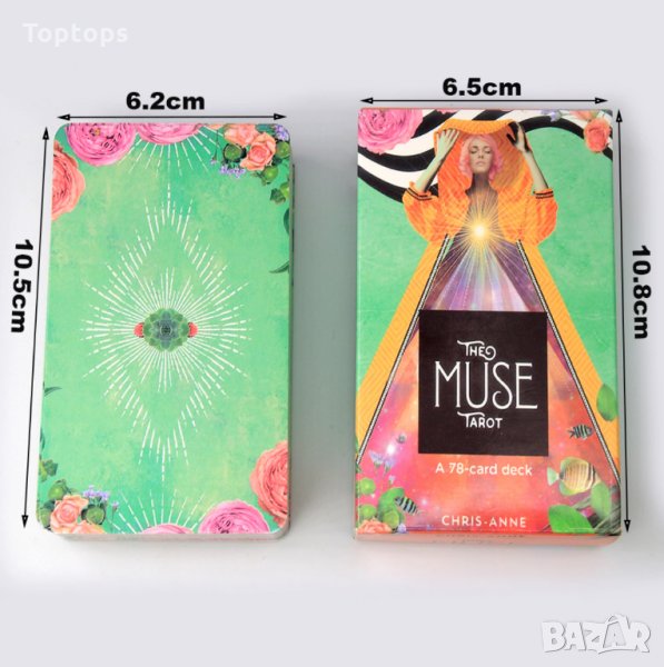 - 78 таро карти - The Muse Tarot заедно с пдф файл с инструкции на английски. Размерът им е 10,3см х 6,5см, колодата е създадена от Chris-Anne.