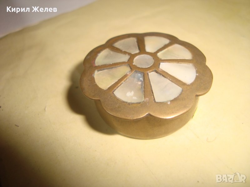 СТАРА ОРИЕНТАЛСКА БРОНЗОВА КУТИЙКА за БЛАГОВОНИЯ БАЛСАМ ИНКРУСТИРАНА със СЕДЕФ 25035
