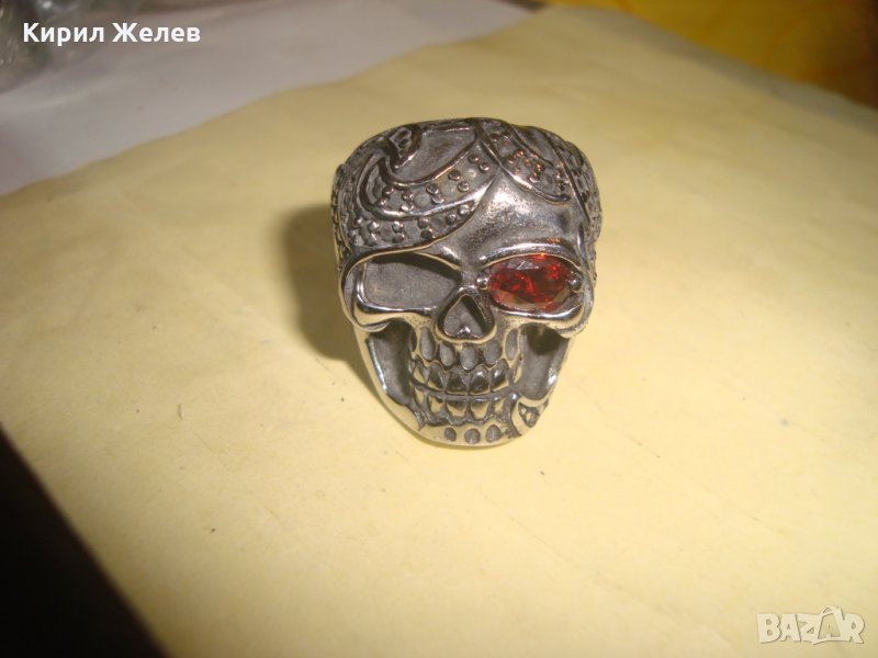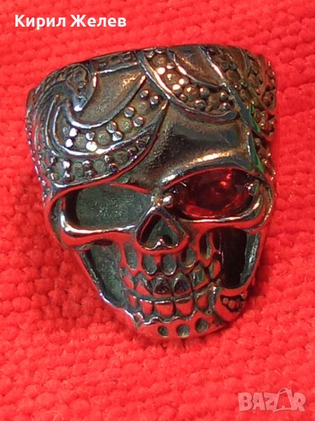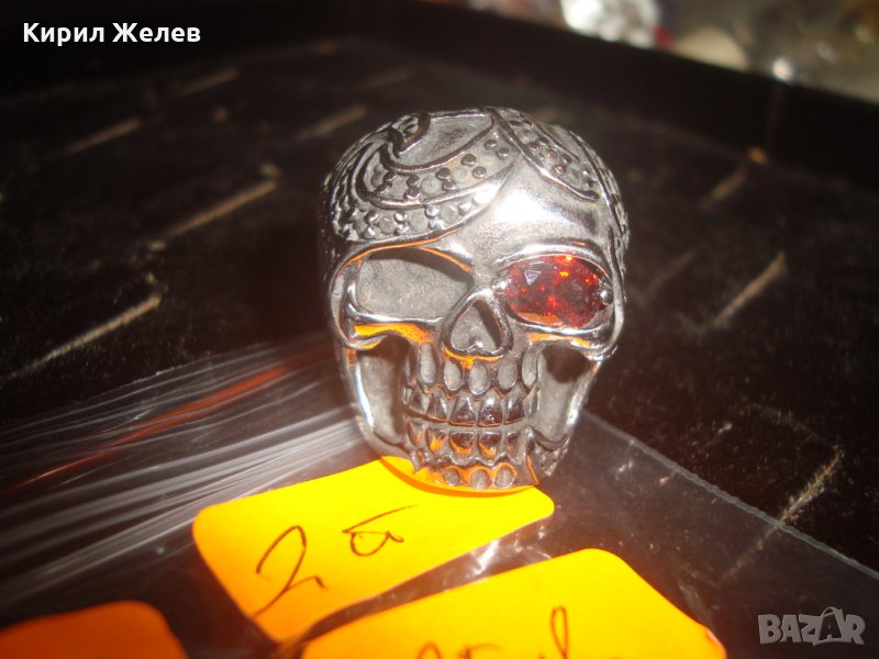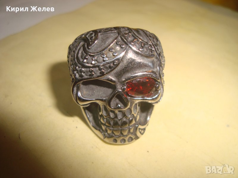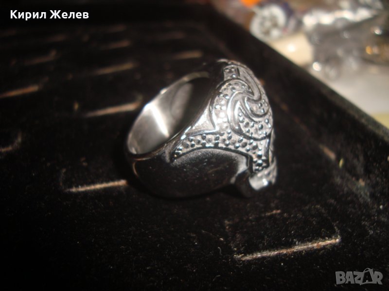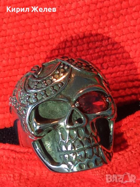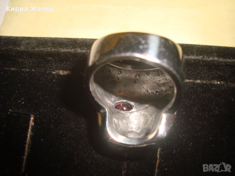 ПИРАТСКИ ПРЪСТЕН от БЛАГОРОДНА НЕРЪЖДАЕМА ОКСИДИРАНА СТОМАНА със СКЪПОЦЕНЕН ФАСЕТИРАН ГРАНАТ 24970