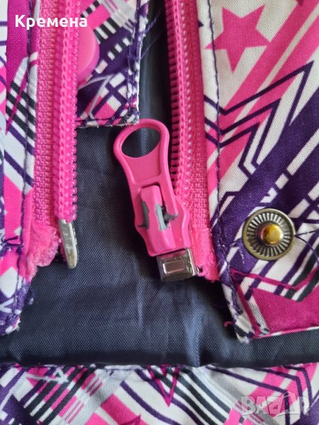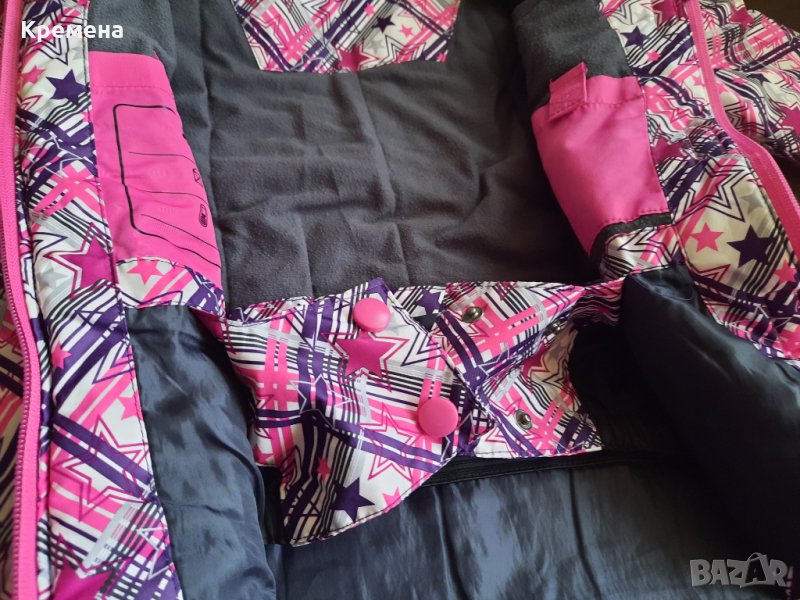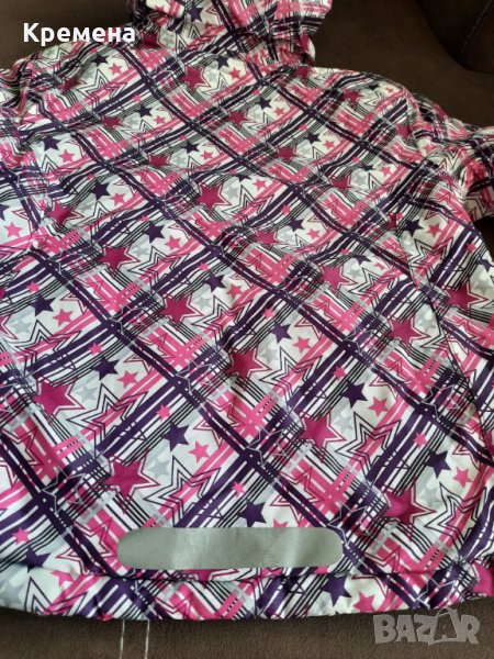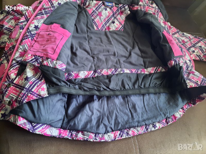 Зимно яке за момиче, размер 110/116. Обличано е, състоянието му е много добро, изключвам само ципа отдолу- единият му край е повреден (може да се оправи, най-добре ще е според мен ако му се смени ципа - вижда се на снимките). Материята е непропусклива.