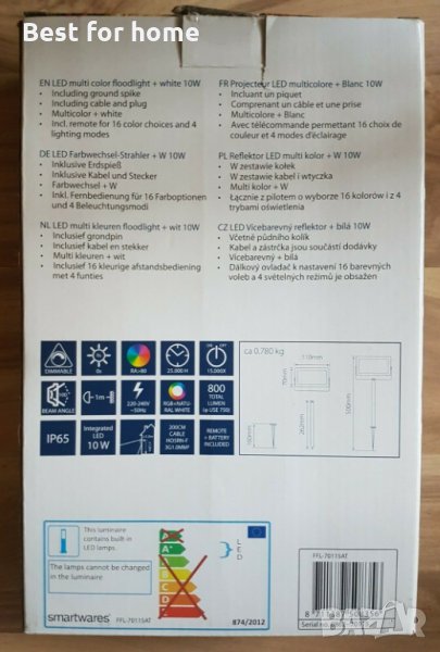 LED външен прожектор с възможност за смяна на светлината RGB + бяла. Комплектът включва рефлектор, шип за залепване в земята и дистанционно управление, което ви позволява да променяте цвета на светлината и нейната мощност. Дистанционното управление ви позволява да промените трайно даден цвят, плавни преходи през целия диапазон или стробоскоп.