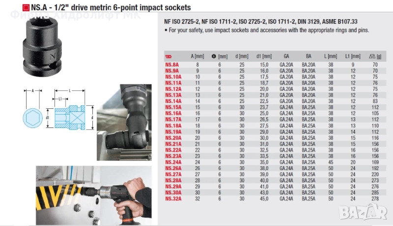 FACOM NS.A Вложка 1/2" усилена шестостенна - различни размери и цени