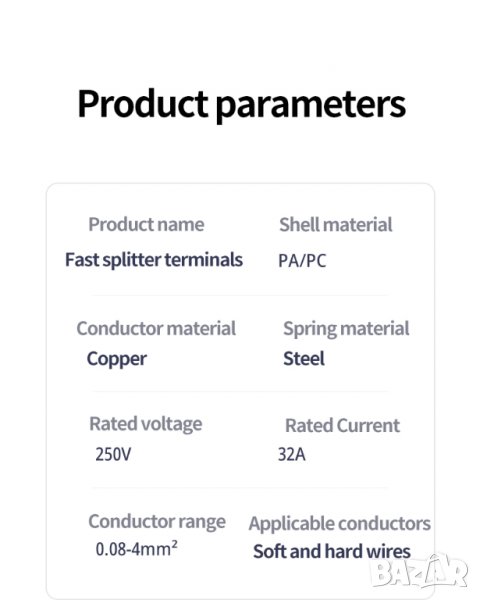 Капацитет: Подходящи за солидни (единични) проводници с напречно сечение до ~2.5 mm² (AWG 14). Внимание: Винаги проверявайте точните спецификации на продукта!
