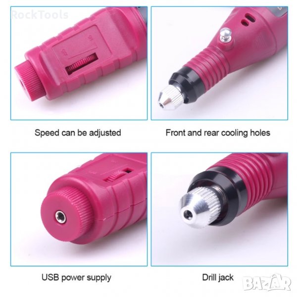Търсите ли професионална, спа-техника за маникюр и педикюр? Този комплект електрическа пила за нокти е точно за вас. С тази многофункционална мини преносима пила за нокти можете да извършите повечето професионални салонни процедури у дома като пилене, оформяне, дърворезба,полиране,пробиване, маникюр, педикюр, премахване на мазоли и мъртва кожа. Предлага се с 6 метални бита / полиращи глави и 6 шлифовъчни ленти по ваш избор, скоростта на управление е променлива (2000-18000 RPM), за да си направите ноктите както искате. Страхотни подаръци за момичета и жени и подходящи за