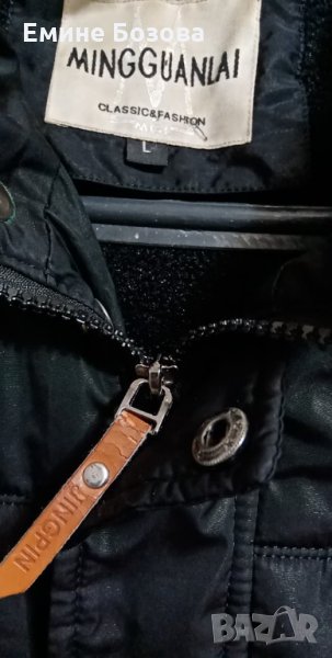 Мъжко черно шушляково яке Mingguanlai classics fashion р-р L.Закопчаване с цип и тик-так копчета,стол яка,подвижна качулка,дебела подплата 2 джоба с ципчета.