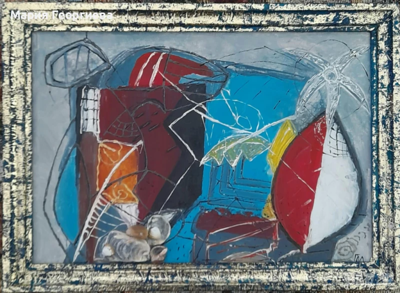 1. Риби 35,5 х 35,5 /смесена техника, на картон, лак /рамка от дърво