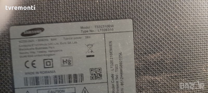 MAIN BOARD, BN94-09314M, BN41-02098, for SAMSUNG T32E310EW борда е гарантирано работещ Демонтиран от телевизор SAMSUNG модел T32E310EW със счупен дисплей CY-GJ032BGEV1H тествана от нашия техник