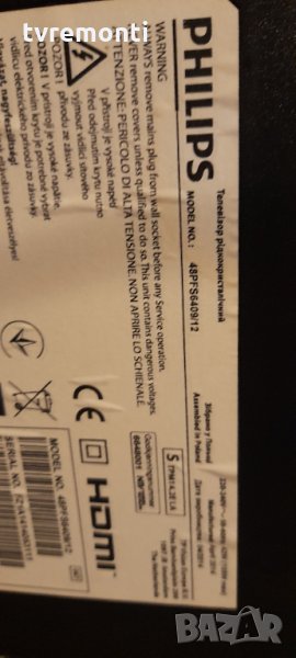 Платка POWER SUPPLY 715G6338-P02-000-002S борда е гарантирано работещ Демонтиран от телевизор Philips модел 48PFS6409 със счупен дисплей TPT480LS-HJ02 REV:SC1D тествана от нашия техник