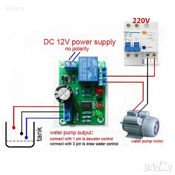Продуктът се основава на подържане на басейн (водна кула) за контрол на нивото на водата с високия ток на релето за управление на помпата.