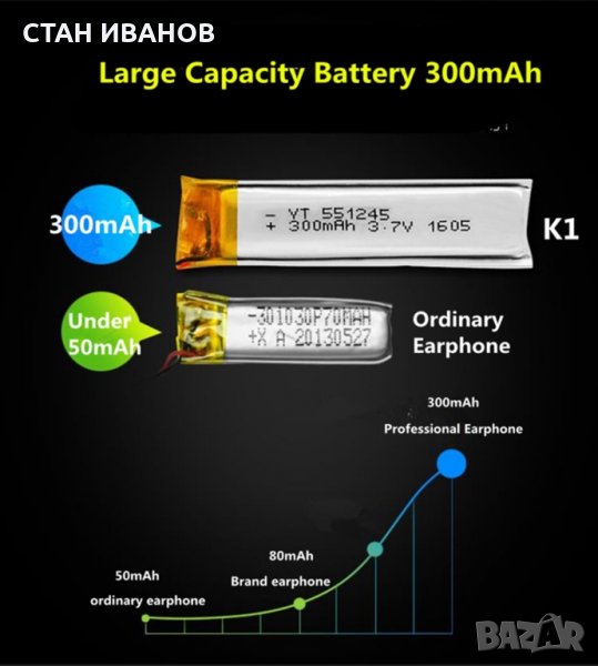 - Капацитет на батерията: 300mAh полимерна литиева батерия.