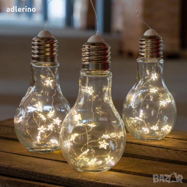 тилна LED настолна лампа във форма на стъклена обикновена крушка с винтова резба. Комплект от 3 броя!