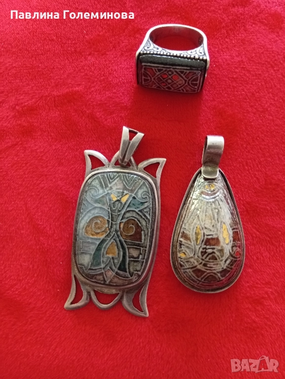 снимка 11 - сребърни медальони и пръстен с емайл, цени - 40 евро, 30 евро , 22 евро