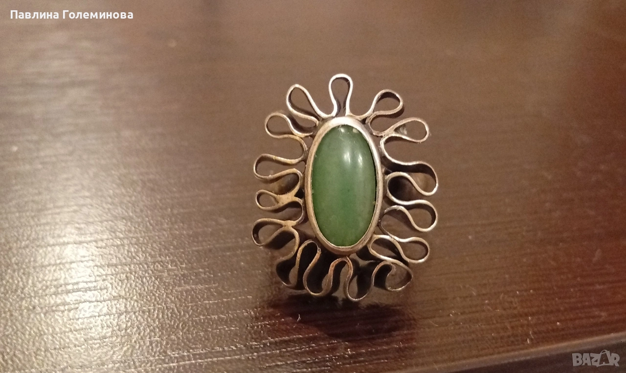 снимка 18- нов, авторски сребърен пръстен със зелен авантюрин, вътрешен диаметър 18 мм - 40 евро
