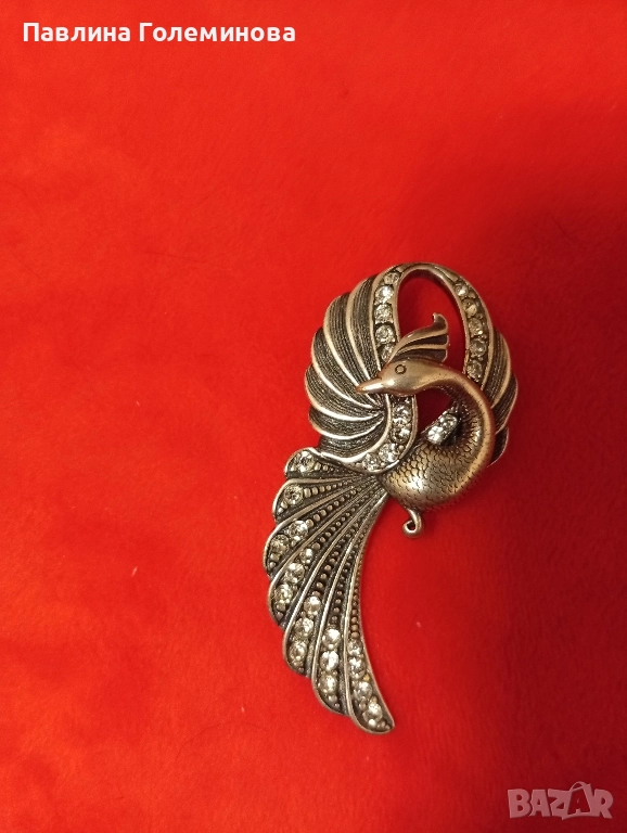 снимка 15 - сребърна брошка - жар птица с кристалчета Сваровски - 45 евро