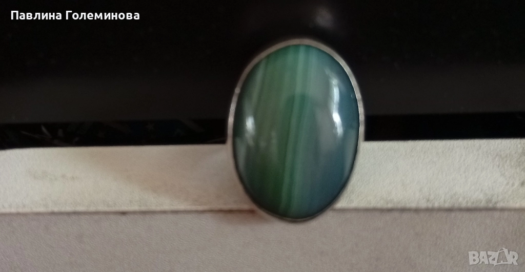 снимка 8 - сребърен пръстен със зелен ахат, диаметър 18 мм -30 евро