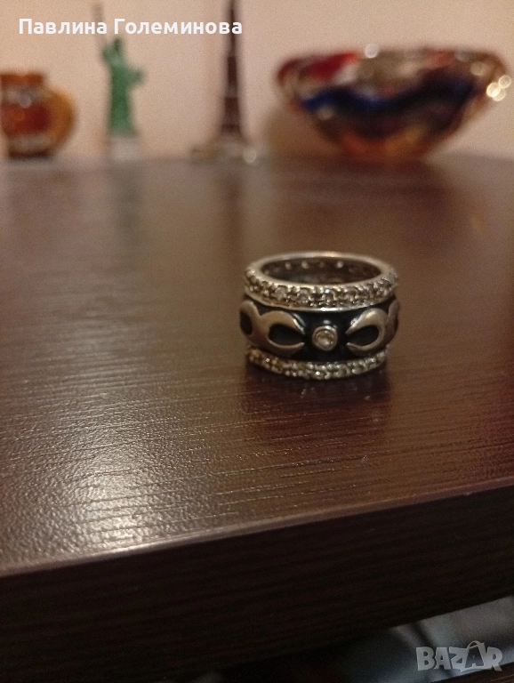снимка 9 - масивен сребърен пръстен с черен емайл и цирконий, диаметър 20 см - 30 евро
