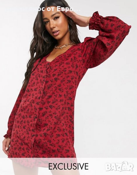 BooHoo Флорална червена мини рокля с буфан ръкав, снимка 1 - Рокли - 34447982 BooHoo Флорална червена мини рокля с буфан ръкав, снимка 2 - Рокли - 34447982 1/2