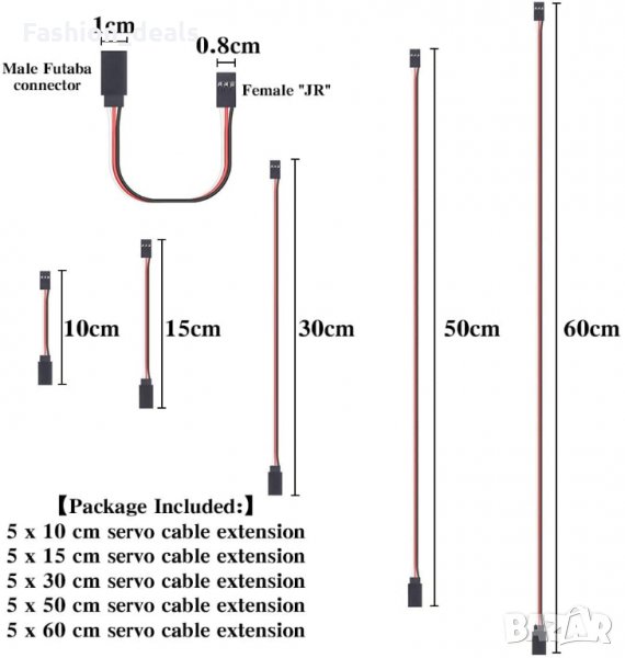 5 различни дължини-10см, 15см, 30см, 50см и 60см