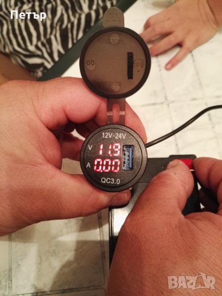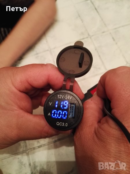 волтметър и амперметър. С предпазно капаче. Работи на 12 и 24V. Показва с колко ампера се зарежда телефона, както и състоянието (зареждането) на акумулатора. Диаметъра на показващия уред е 28мм, дълбочина 30мм. Комплектът включва 2бр. кабели с кабелни обувки, гайка и волтметър. Намира широко приложение в автомобили, лодки, каравани, кемпери, АТВ, УТВ, камиони и мотоциклети. Цветен дисплей! Налични три цвята - син, зелен, червен. На гърба на волтметъра има пластмасова гайка, която позволява на уреда да се стегне към стойка, табло или плоскост. Изключително лесен за монтаж.