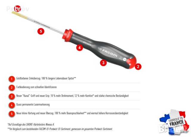 ******************** ORIGINAL F A C O M PROFI-SET - Made in FRANCE - 12 броя ВЪРХОВНОКАЧЕСТВЕННИ ПРОФЕСИОНАЛНИ Отверки + 2 броя Поставки за стена от