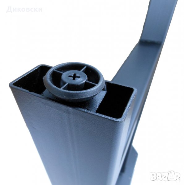 Голяма метална плоча отгоре. Прахово боядисани в черен мат. В комплекта са предвидени и подходящи крепежи за монтаж на дървения плот. Размери: Ш700хВ720Х120мм. Лесна подръжка и дълговечност.