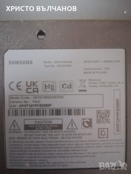 SAMSUNG UE32T4002AK на части, снимка 1 - Части и Платки - 34462835 SAMSUNG UE32T4002AK на части, снимка 2 - Части и Платки - 34462835 SAMSUNG UE32T4002AK на части, снимка 3 - Части и Платки - 34462835 SAMSUNG UE32T4002AK на части, снимка 4 - Части и Платки - 34462835 SAMSUNG UE32T4002AK на части, снимка 5 - Части и Платки - 34462835 SAMSUNG UE32T4002AK на части, снимка 6 - Части и Платки - 34462835 1/6