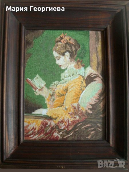 2. Момичето с книгата / размер без рамка - 18 / 23, ситен бод, рамката е от дърво, включена в цената / цена 230 лв.