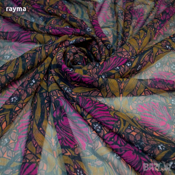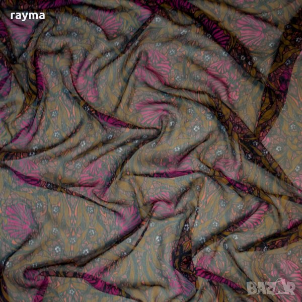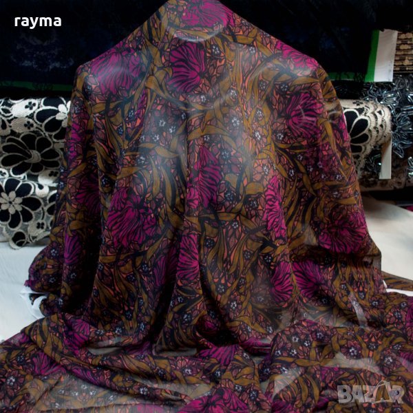Плат италианска естествена коприна креп шифон флорален принт → Обява 34464463